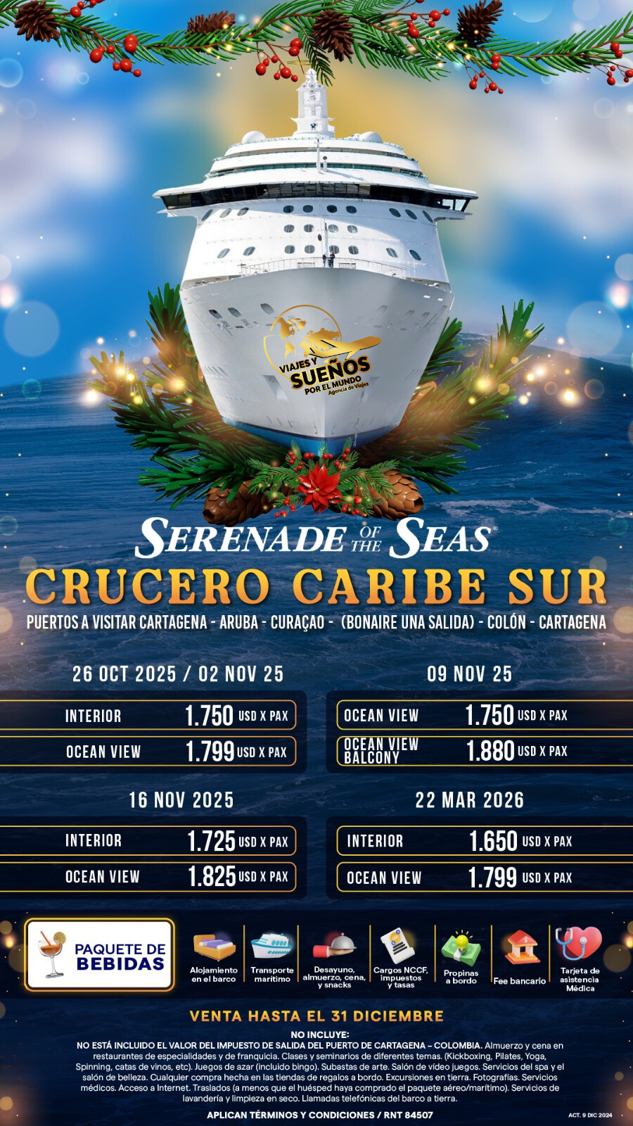 Cruceros: Viaja con comodidad por el Caribe o el Mediterráneo.