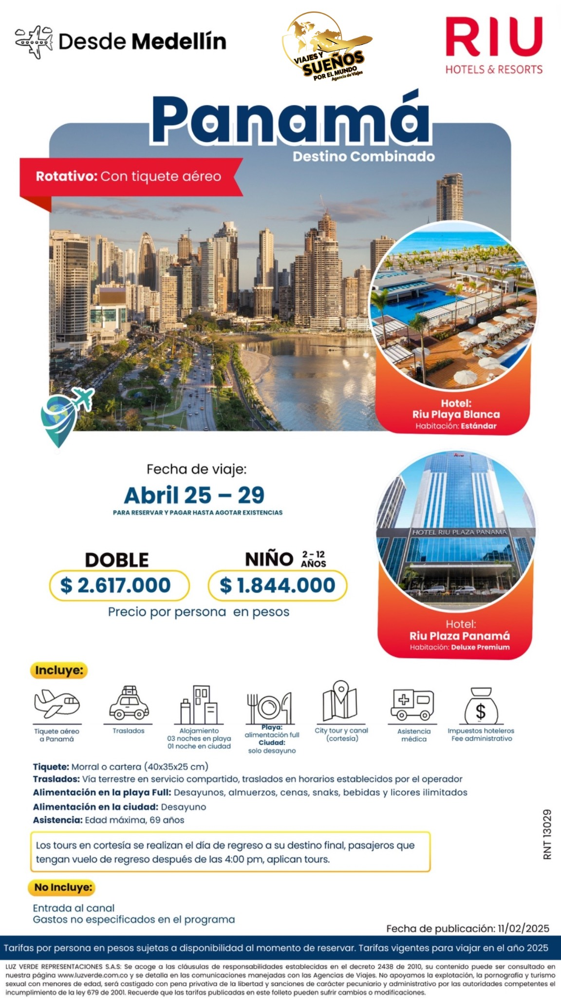 Paquetes todo incluido con vuelos, hoteles y alimentación.