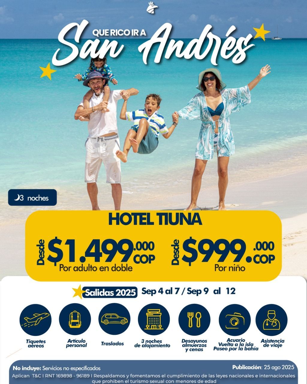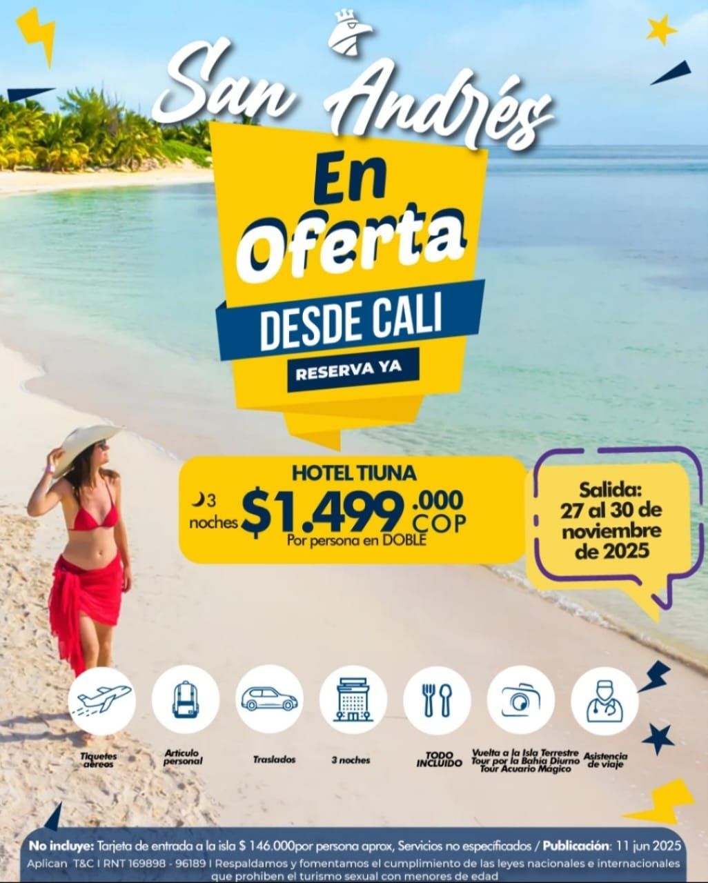 Descubre playas de arena blanca, aguas cristalinas y una cultura caribeña llena de sabor y alegría. Te llevamos a vivir la experiencia inolvidable de la isla más hermosa de Colombia, con planes diseñados para todos los gustos: descanso, aventura, romance o diversión en familia.