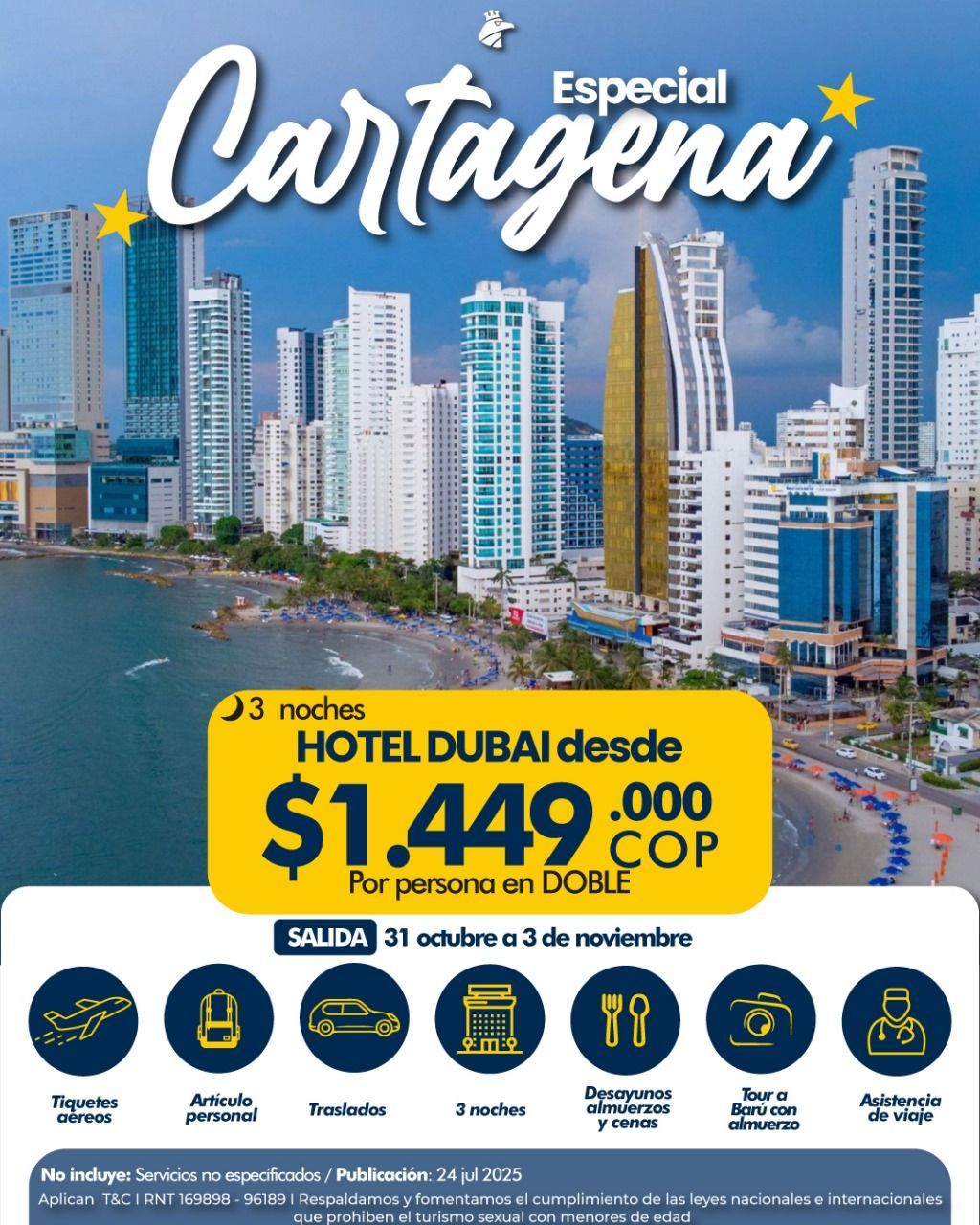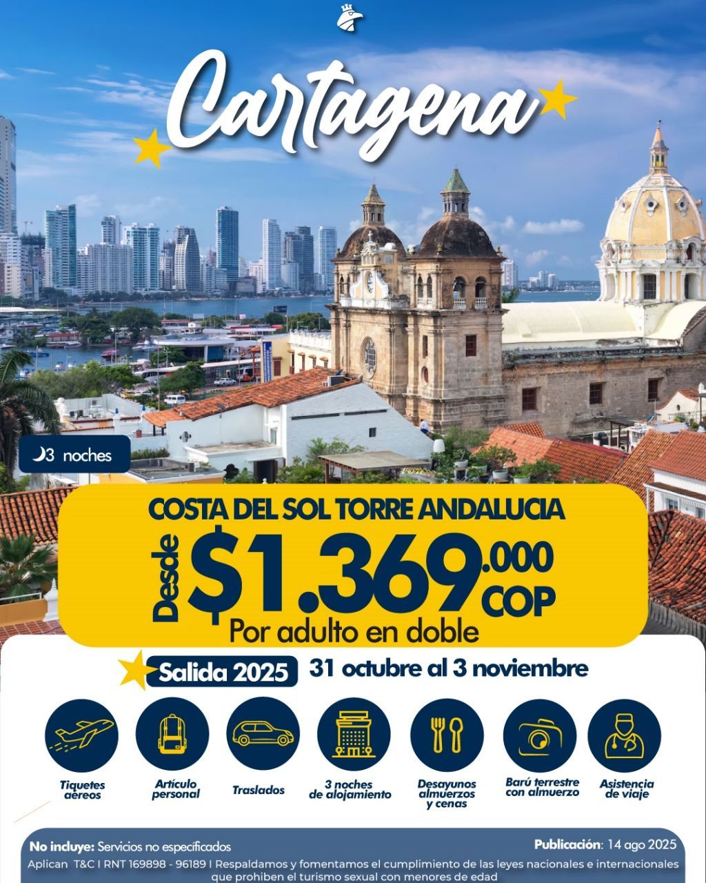 Sumérgete en la magia de la “Ciudad Amurallada”, Patrimonio de la Humanidad, donde la historia colonial se mezcla con el encanto del mar Caribe. Vive la calidez de su gente, disfruta de playas paradisíacas y descubre rincones llenos de cultura, sabor y alegría.